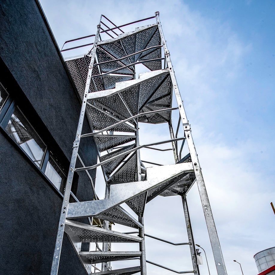 - Bezpieczne dojście w każdych warunkach – antypoślizgowe, stalowe stopnie i barierki po obu stronach minimalizują ryzyko poślizgnięć i upadków.